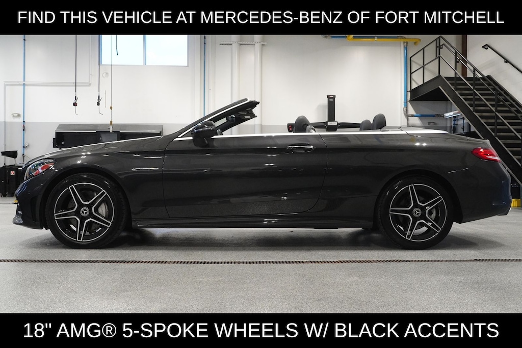 ORIGINAL MSRP $ 63,180.00 831 Graphite Grey Metallic 138 Ash Leather Seating Inserts Options DA3 Parking Assist Package 235 PARKTRONIC with Active Parking Assist 501 Surround View Camera P47 Parking Assist Control Code DC1 Night Package P55 Night Package DG3 AMG Line 486 Sport Suspension 5U4 Diamond Grille 772 AMG Line P29 AMG Line Interior P31 AMG Line Exterior 355 Pre-Installation for SD-Card Navigation 367 Live Traffic 443 Heated Steering Wheel 464 12.3" Digital Instrument Cluster 51U Black Fabric Headliner 6P5 Factory Code 740 Black Soft Top 897 Inductive Wireless Charging & NFC Pairing 90B Factory Code H31 Natural Grain Grey Oak Wood Trim K38 Factory Code L3B Heating for Multifunction Steering Wheel R02 All-Season Tires RSK 18" AMG 5-Spoke Wheels w/ Black Accents U26 Floormats D33 All-Season Front Floormats, Black Rubber