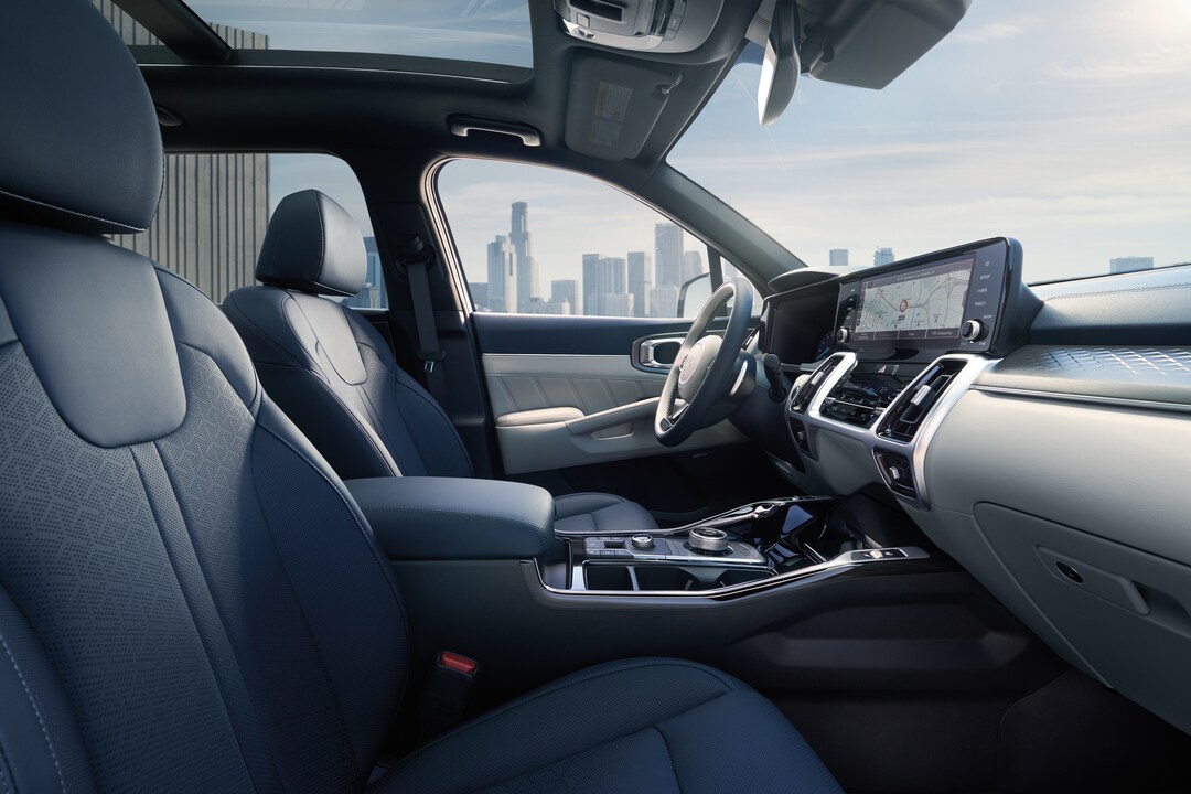 Under the hood, the Sorento comes standard with a 2.5L 4-cylinder engine that produces 191 horsepower. This naturally aspirated engine provides ample power for everyday driving situations. For those seeking more spirited performance, a 2.5L turbocharged 4-cylinder is available, generating an impressive 281 horsepower. Both engines are paired with an 8-speed automatic transmission for smooth and responsive shifts.