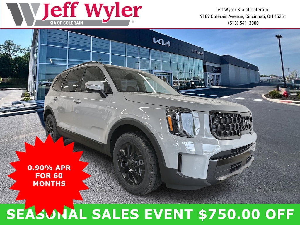 Jeff Wyler Kia of Colerain is pumped up to offer this beautiful 2025 Kia Telluride EX X-Pro in Wolf Gray. 3rd row seats: split-bench, 4-Wheel Disc Brakes, 6 Speakers, ABS brakes, Air Conditioning, Alloy wheels, AM/FM radio: SiriusXM, Apple CarPlay & Android Auto, Auto High-beam Headlights, Auto-dimming Rear-View mirror, Auto-leveling suspension, Automatic temperature control, Brake assist, Bumpers: body-color, Carpeted Floor Mats, Compass, Delay-off headlights, Driver door bin, Driver vanity mirror, Dual front impact airbags, Dual front side impact airbags, Electronic Stability Control, Emergency communication system: 911 Connect, Exterior Parking Camera Rear, Four wheel independent suspension, Front anti-roll bar, Front Bucket Seats, Front Center Armrest, Front dual zone A/C, Front reading lights, Fully automatic headlights, Heated & Ventilated Front Bucket Seats, Heated door mirrors, Heated front seats, Heated steering wheel, Illuminated entry, Knee airbag, Leather Seat Trim, Leather Shift Knob, Leather steering wheel, Low tire pressure warning, Navigation System, Occupant sensing airbag, Outside temperature display, Overhead airbag, Overhead console, Panic alarm, Passenger door bin, Passenger vanity mirror, Power door mirrors, Power driver seat, Power Liftgate, Power moonroof, Power passenger seat, Power steering, Power windows, Radio data system, Radio: AM/FM Display Audio System, Rear air conditioning, Rear anti-roll bar, Rear audio controls, Rear reading lights, Rear side impact airbag, Rear window defroster, Rear window wiper, Reclining 3rd row seat, Remote keyless entry, Security system, Speed control, Speed-sensing steering, Split folding rear seat, Spoiler, Steering wheel mounted audio controls, Tachometer, Telescoping steering wheel, Tilt steering wheel, Traction control, Trip computer, Turn signal indicator mirrors, Variably intermittent wipers, Ventilated front seats, and Wheels: 18" x 7.5" Black Finish X-PRO Exclusive Our PRE-OWNED vehicles are put through a rigorous 167- POINT QUALITY ASSURANCE INSPECTION along with an average amount of over $1,400.00 SPENT to recondition each vehicle so we can be sure to deliver you the highest quality vehicle like you deserve! ***ONLINE PRICE DOES NOT INCLUDE WYLER FAMILY FIRST PACKAGE*** Price includes: $750 - Sticker Sales Event Retail Bonus Cash. Exp. 12/01/2025