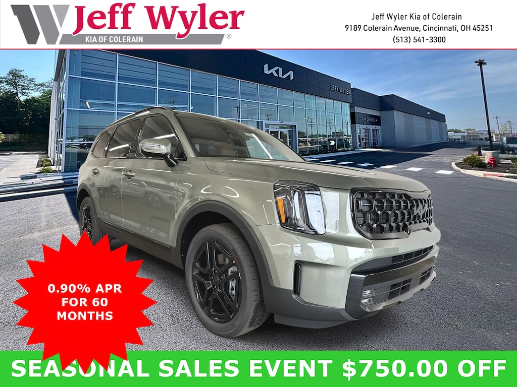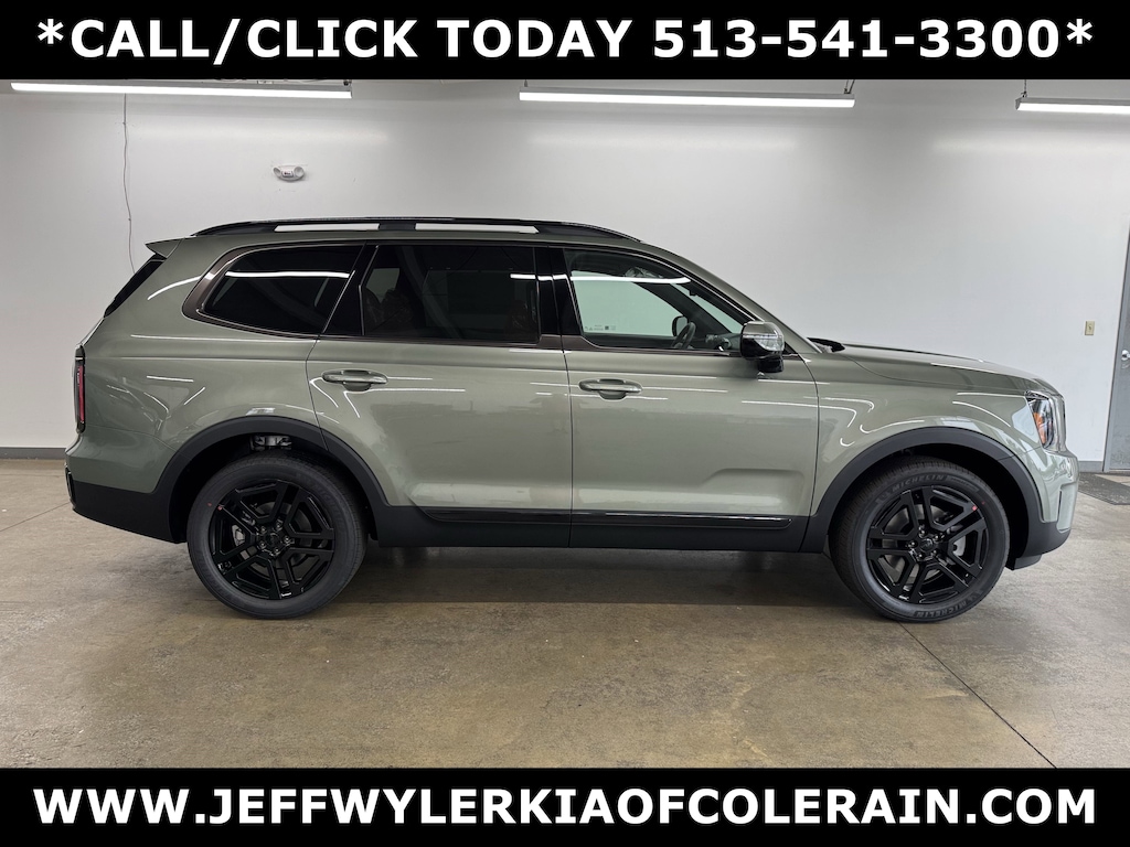 Jeff Wyler Kia of Colerain is honored to offer this superb 2025 Kia Telluride SX-Prestige X-Line in Jungle Green. Terracotta Interior Color Package, 10 Speakers, 3rd row seats: split-bench, 4-Wheel Disc Brakes, ABS brakes, Air Conditioning, Alloy wheels, AM/FM radio: SiriusXM, Apple CarPlay & Android Auto, Auto High-beam Headlights, Auto-dimming Rear-View mirror, Auto-leveling suspension, Automatic temperature control, Brake assist, Bumpers: body-color, Compass, Delay-off headlights, Driver door bin, Driver vanity mirror, Dual front impact airbags, Dual front side impact airbags, Electronic Stability Control, Emergency communication system: 911 Connect, Exterior Parking Camera Rear, Four wheel independent suspension, Front anti-roll bar, Front Bucket Seats, Front Center Armrest, Front dual zone A/C, Front fog lights, Front reading lights, Fully automatic headlights, Garage door transmitter: HomeLink, harman/kardon® Speakers, Heads-Up Display, Heated & Ventilated Front Bucket Seats, Heated door mirrors, Heated front seats, Heated rear seats, Heated steering wheel, Illuminated entry, Knee airbag, Leather Shift Knob, Leather steering wheel, Low tire pressure warning, Memory seat, Nappa Leather Seat Trim, Navigation System, Occupant sensing airbag, Outside temperature display, Overhead airbag, Overhead console, Panic alarm, Passenger door bin, Passenger vanity mirror, Power door mirrors, Power driver seat, Power Liftgate, Power moonroof, Power passenger seat, Power steering, Power windows, Radio data system, Radio: AM/FM Harman Kardon Audio System, Rain sensing wipers, Rear air conditioning, Rear anti-roll bar, Rear audio controls, Rear reading lights, Rear side impact airbag, Rear window defroster, Rear window wiper, Reclining 3rd row seat, Remote keyless entry, Security system, Speed control, Speed-sensing steering, Split folding rear seat, Spoiler, Steering wheel mounted audio controls, Tachometer, Telescoping steering wheel, Tilt steering wheel, Traction control, Trip computer, Turn signal indicator mirrors, Variably intermittent wipers, Ventilated front seats, Ventilated rear seats, and Wheels: 20" x 7.5" Black Finish X-LINE Exclusive Our PRE-OWNED vehicles are put through a rigorous 167- POINT QUALITY ASSURANCE INSPECTION along with an average amount of over $1,400.00 SPENT to recondition each vehicle so we can be sure to deliver you the highest quality vehicle like you deserve! ***ONLINE PRICE DOES NOT INCLUDE WYLER FAMILY FIRST PACKAGE*** Price includes: $750 - Sticker Sales Event Retail Bonus Cash. Exp. 12/01/2025