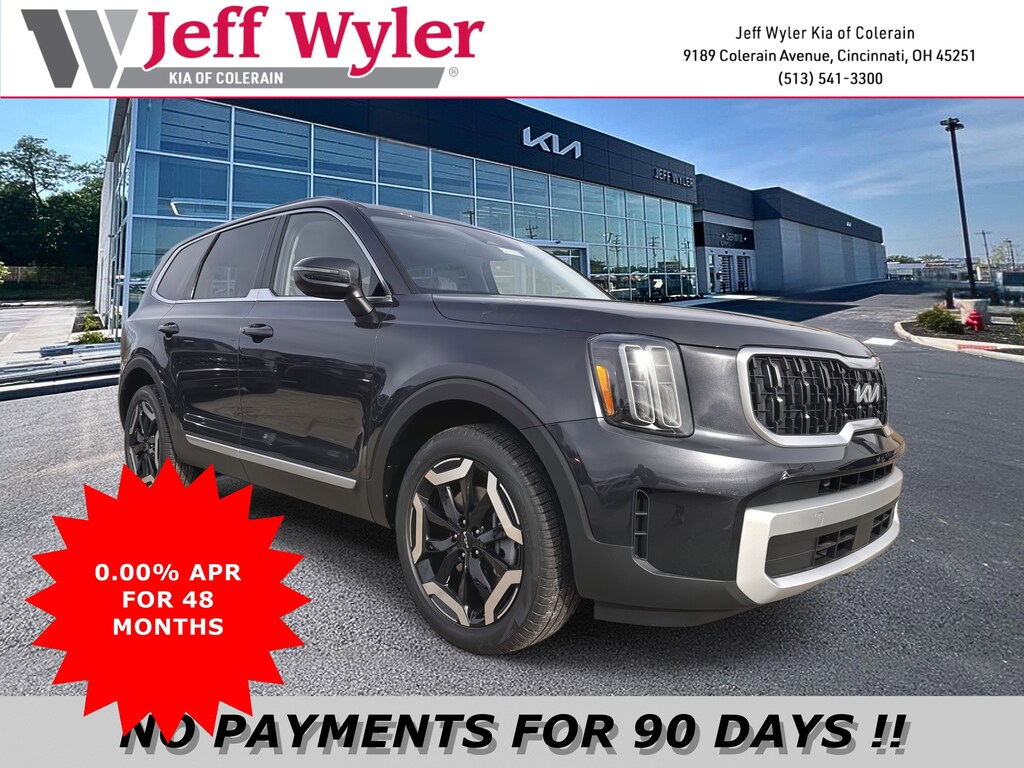 Jeff Wyler Kia of Colerain is honored to offer this good-looking 2025 Kia Telluride EX in Panthera Metal. EX Captain's Chair Package (2nd Row Captain Chairs), 3rd row seats: split-bench, 4-Wheel Disc Brakes, 6 Speakers, ABS brakes, Air Conditioning, Alloy wheels, AM/FM radio: SiriusXM, Apple CarPlay & Android Auto, Auto High-beam Headlights, Auto-dimming Rear-View mirror, Automatic temperature control, Brake assist, Bumpers: body-color, Carpeted Floor Mats, Compass, Cross Bars, Delay-off headlights, Driver door bin, Driver vanity mirror, Dual front impact airbags, Dual front side impact airbags, Electronic Stability Control, Emergency communication system: 911 Connect, Exterior Parking Camera Rear, Folding Cargo Tray, Four wheel independent suspension, Front anti-roll bar, Front Bucket Seats, Front Center Armrest, Front dual zone A/C, Front reading lights, Fully automatic headlights, Heated & Ventilated Front Bucket Seats, Heated door mirrors, Heated front seats, Illuminated entry, Knee airbag, Leather Seat Trim, Leather Shift Knob, Leather steering wheel, Low tire pressure warning, Navigation System, Occupant sensing airbag, Outside temperature display, Overhead airbag, Overhead console, Panic alarm, Passenger door bin, Passenger vanity mirror, Power door mirrors, Power driver seat, Power Liftgate, Power moonroof, Power passenger seat, Power steering, Power windows, Radio data system, Radio: AM/FM Display Audio System, Rear air conditioning, Rear anti-roll bar, Rear audio controls, Rear reading lights, Rear seat center armrest, Rear side impact airbag, Rear window defroster, Rear window wiper, Reclining 3rd row seat, Remote keyless entry, Security system, Speed control, Speed-sensing steering, Split folding rear seat, Spoiler, Steering wheel mounted audio controls, Tachometer, Telescoping steering wheel, Tilt steering wheel, Traction control, Trip computer, Turn signal indicator mirrors, Variably intermittent wipers, Ventilated front seats, Wheel Locks, and Wheels: 20" x 7.5" Black Finish Our PRE-OWNED vehicles are put through a rigorous 167- POINT QUALITY ASSURANCE INSPECTION along with an average amount of over $1,400.00 SPENT to recondition each vehicle so we can be sure to deliver you the highest quality vehicle like you deserve! ***ONLINE PRICE DOES NOT INCLUDE WYLER FAMILY FIRST PACKAGE***