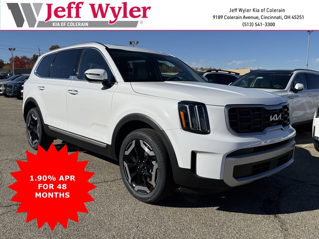 Jeff Wyler Kia of Colerain is pleased to offer this great-looking 2025 Kia Telluride S in White. 3rd row seats: split-bench, 4-Wheel Disc Brakes, 6 Speakers, ABS brakes, Air Conditioning, Alloy wheels, AM/FM radio: SiriusXM, Apple CarPlay & Android Auto, Auto High-beam Headlights, Automatic temperature control, Brake assist, Bumpers: body-color, Delay-off headlights, Driver door bin, Driver vanity mirror, Dual front impact airbags, Dual front side impact airbags, Electronic Stability Control, Emergency communication system: 911 Connect, Exterior Parking Camera Rear, Four wheel independent suspension, Front anti-roll bar, Front Bucket Seats, Front Center Armrest, Front dual zone A/C, Front reading lights, Fully automatic headlights, Heated door mirrors, Heated Front Bucket Seats, Heated front seats, Illuminated entry, Knee airbag, Leather Shift Knob, Leather steering wheel, Low tire pressure warning, Navigation System, Occupant sensing airbag, Outside temperature display, Overhead airbag, Overhead console, Panic alarm, Passenger door bin, Passenger vanity mirror, Power door mirrors, Power driver seat, Power Liftgate, Power moonroof, Power steering, Power windows, Radio data system, Radio: AM/FM Display Audio System, Rear air conditioning, Rear anti-roll bar, Rear audio controls, Rear reading lights, Rear side impact airbag, Rear window defroster, Rear window wiper, Reclining 3rd row seat, Remote keyless entry, Security system, Speed control, Speed-sensing steering, Split folding rear seat, Spoiler, Steering wheel mounted audio controls, SynTex Synthetic Leather Seat Trim, Tachometer, Telescoping steering wheel, Tilt steering wheel, Traction control, Trip computer, Turn signal indicator mirrors, Variably intermittent wipers, and Wheels: 20" x 7.5" Black Finish Our PRE-OWNED vehicles are put through a rigorous 167- POINT QUALITY ASSURANCE INSPECTION along with an average amount of over $1,400.00 SPENT to recondition each vehicle so we can be sure to deliver you the highest quality vehicle like you deserve! ***ONLINE PRICE DOES NOT INCLUDE WYLER FAMILY FIRST PACKAGE***