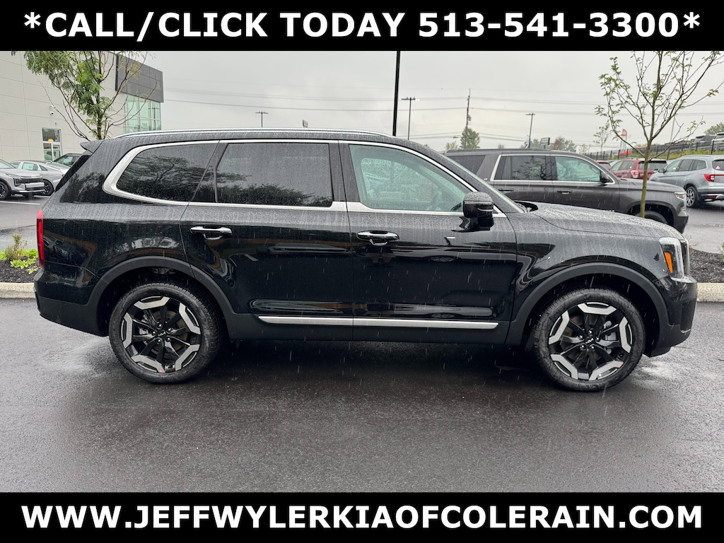 Jeff Wyler Kia of Colerain is pumped up to offer this handsome-looking 2025 Kia Telluride S in Ebony Black. 3rd row seats: split-bench, 4-Wheel Disc Brakes, 6 Speakers, ABS brakes, Air Conditioning, Alloy wheels, AM/FM radio: SiriusXM, Apple CarPlay & Android Auto, Auto High-beam Headlights, Automatic temperature control, Brake assist, Bumpers: body-color, Carpeted Floor Mats, Delay-off headlights, Driver door bin, Driver vanity mirror, Dual front impact airbags, Dual front side impact airbags, Electronic Stability Control, Emergency communication system: 911 Connect, Exterior Parking Camera Rear, Four wheel independent suspension, Front anti-roll bar, Front Bucket Seats, Front Center Armrest, Front dual zone A/C, Front reading lights, Fully automatic headlights, Heated door mirrors, Heated Front Bucket Seats, Heated front seats, Illuminated entry, Knee airbag, Leather Shift Knob, Leather steering wheel, Low tire pressure warning, Navigation System, Occupant sensing airbag, Outside temperature display, Overhead airbag, Overhead console, Panic alarm, Passenger door bin, Passenger vanity mirror, Power door mirrors, Power driver seat, Power Liftgate, Power moonroof, Power steering, Power windows, Radio data system, Radio: AM/FM Display Audio System, Rear air conditioning, Rear anti-roll bar, Rear audio controls, Rear reading lights, Rear side impact airbag, Rear window defroster, Rear window wiper, Reclining 3rd row seat, Remote keyless entry, Security system, Speed control, Speed-sensing steering, Split folding rear seat, Spoiler, Steering wheel mounted audio controls, SynTex Synthetic Leather Seat Trim, Tachometer, Telescoping steering wheel, Tilt steering wheel, Traction control, Trip computer, Turn signal indicator mirrors, Variably intermittent wipers, and Wheels: 20" x 7.5" Black Finish Our PRE-OWNED vehicles are put through a rigorous 167- POINT QUALITY ASSURANCE INSPECTION along with an average amount of over $1,400.00 SPENT to recondition each vehicle so we can be sure to deliver you the highest quality vehicle like you deserve! ***ONLINE PRICE DOES NOT INCLUDE WYLER FAMILY FIRST PACKAGE***