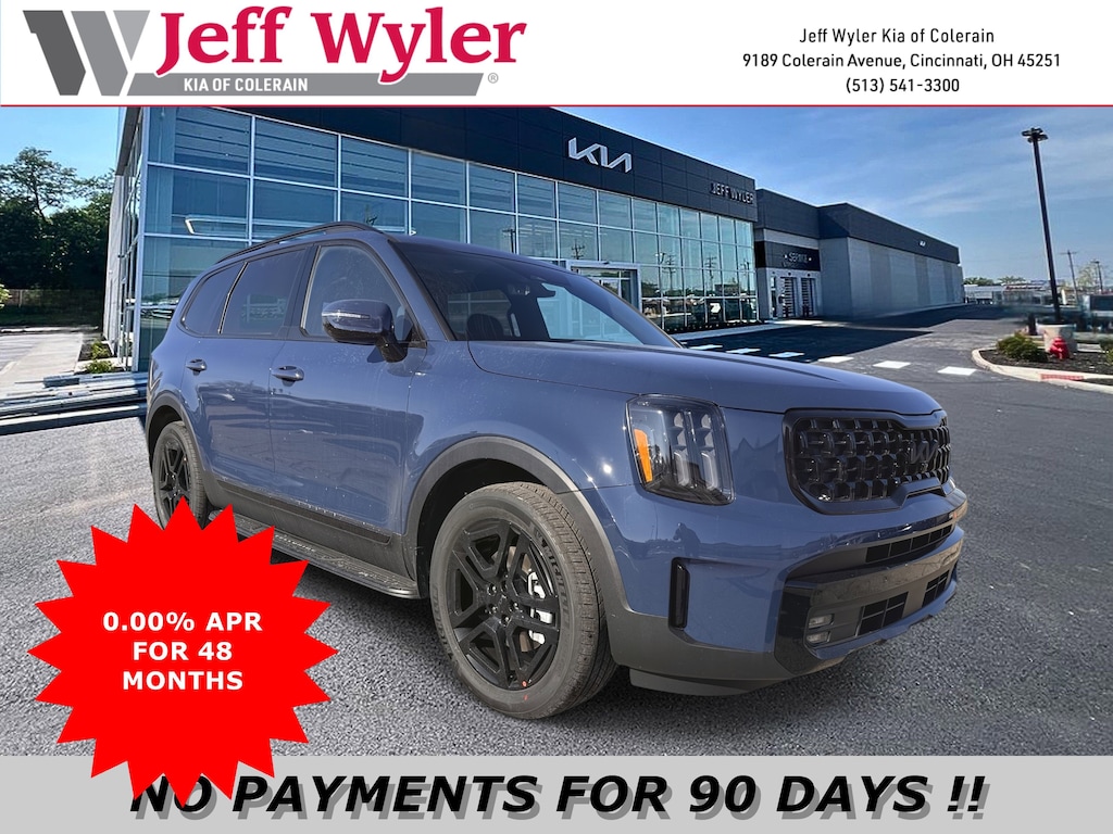 Jeff Wyler Kia of Colerain is pleased to offer this attractive-looking 2025 Kia Telluride SX-Prestige X-Line in Midnight Lake Blue. 10 Speakers, 3rd row seats: split-bench, 4-Wheel Disc Brakes, ABS brakes, Air Conditioning, Alloy wheels, AM/FM radio: SiriusXM, Apple CarPlay & Android Auto, Auto High-beam Headlights, Auto-dimming Rear-View mirror, Auto-leveling suspension, Automatic temperature control, Black Side Step Bars, Brake assist, Bumpers: body-color, Carpeted Floor Mats, Compass, Delay-off headlights, Driver door bin, Driver vanity mirror, Dual front impact airbags, Dual front side impact airbags, Electronic Stability Control, Emergency communication system: 911 Connect, Exterior Parking Camera Rear, Folding Cargo Tray, Four wheel independent suspension, Front anti-roll bar, Front Bucket Seats, Front Center Armrest, Front dual zone A/C, Front fog lights, Front reading lights, Fully automatic headlights, Garage door transmitter: HomeLink, harman/kardon® Speakers, Heads-Up Display, Heated & Ventilated Front Bucket Seats, Heated door mirrors, Heated front seats, Heated rear seats, Heated steering wheel, Illuminated entry, Knee airbag, Leather Shift Knob, Leather steering wheel, Low tire pressure warning, Memory seat, Mud Guard Kit, Nappa Leather Seat Trim, Navigation System, Occupant sensing airbag, Outside temperature display, Overhead airbag, Overhead console, Panic alarm, Passenger door bin, Passenger vanity mirror, Power door mirrors, Power driver seat, Power Liftgate, Power moonroof, Power passenger seat, Power steering, Power windows, Radio data system, Radio: AM/FM Harman Kardon Audio System, Rain sensing wipers, Rear air conditioning, Rear anti-roll bar, Rear audio controls, Rear reading lights, Rear side impact airbag, Rear window defroster, Rear window wiper, Reclining 3rd row seat, Remote keyless entry, Security system, Speed control, Speed-sensing steering, Split folding rear seat, Spoiler, Steering wheel mounted audio controls, Tachometer, Telescoping steering wheel, Tilt steering wheel, Traction control, Trip computer, Turn signal indicator mirrors, Variably intermittent wipers, Ventilated front seats, Ventilated rear seats, and Wheels: 20" x 7.5" Black Finish X-LINE Exclusive Our PRE-OWNED vehicles are put through a rigorous 167- POINT QUALITY ASSURANCE INSPECTION along with an average amount of over $1,400.00 SPENT to recondition each vehicle so we can be sure to deliver you the highest quality vehicle like you deserve! ***ONLINE PRICE DOES NOT INCLUDE WYLER FAMILY FIRST PACKAGE***