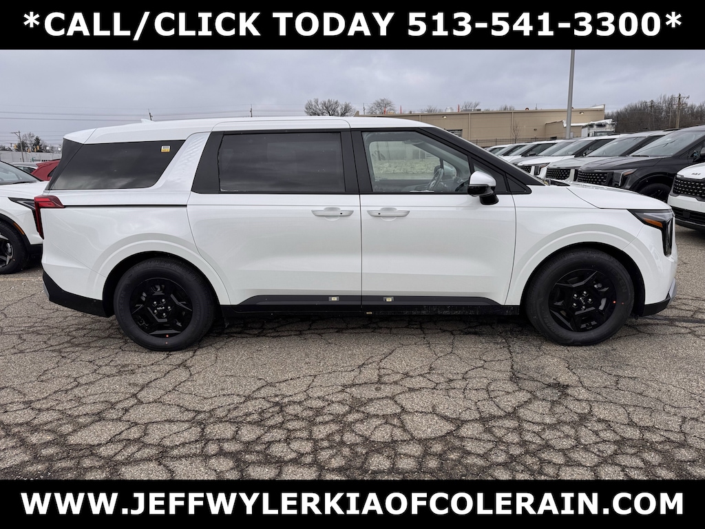 Jeff Wyler Kia of Colerain is pumped up to offer this outstanding-looking 2026 Kia Carnival LXS in Snow White Pearl. 3.51 Axle Ratio, 3rd row seats: split-bench, 4-Wheel Disc Brakes, 6 Speakers, 6.5J x 17" Alloy Wheels, ABS brakes, Air Conditioning, Alloy wheels, AM/FM radio: SiriusXM, Apple CarPlay & Android Auto, Auto High-beam Headlights, Automatic temperature control, Brake assist, Bumpers: body-color, Compass, Delay-off headlights, Driver door bin, Driver vanity mirror, Dual front impact airbags, Dual front side impact airbags, Electronic Stability Control, Emergency communication system, Exterior Parking Camera Rear, Four wheel independent suspension, Front anti-roll bar, Front Bucket Seats, Front Center Armrest, Front dual zone A/C, Front reading lights, Fully automatic headlights, Heated door mirrors, Illuminated entry, Knee airbag, Low tire pressure warning, Navigation System, Occupant sensing airbag, Outside temperature display, Overhead airbag, Overhead console, Panic alarm, Passenger door bin, Passenger vanity mirror, Power door mirrors, Power steering, Power windows, Radio: AM/FM/HD Audio System, Rear air conditioning, Rear anti-roll bar, Rear reading lights, Rear window defroster, Rear window wiper, Reclining 3rd row seat, Remote keyless entry, Security system, Speed control, Speed-sensing steering, Split folding rear seat, Spoiler, Steering wheel mounted audio controls, Tachometer, Telescoping steering wheel, Tilt steering wheel, Traction control, Trip computer, Turn signal indicator mirrors, and Variably intermittent wipers Our PRE-OWNED vehicles are put through a rigorous 167- POINT QUALITY ASSURANCE INSPECTION along with an average amount of over $1,400.00 SPENT to recondition each vehicle so we can be sure to deliver you the highest quality vehicle like you deserve! ***ONLINE PRICE DOES NOT INCLUDE WYLER FAMILY FIRST PACKAGE***