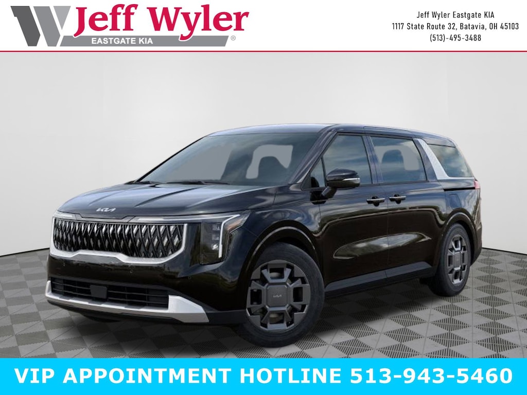 Aurora Black Pearl 2026 Kia Carnival Hybrid EX 1.6L I4 DGI Hybrid Turbocharged DOHC 16V LEV3-SULEV30 FWD 6-Speed Automatic 34/31 City/Highway MPG Jeff Wyler Eastgate Auto Mall is honored to offer this wonderful 2026 Kia Carnival Hybrid EX in Aurora Black Pearl. Well equipped with: 3rd row seats: split-bench, 4-Wheel Disc Brakes, 8 Speakers, ABS brakes, Air Conditioning, Alloy wheels, AM/FM radio: SiriusXM, Apple CarPlay & Android Auto, Artificial Leather Seat Trim, Auto High-beam Headlights, Automatic temperature control, Brake assist, Bumpers: body-color, Carpeted Floor Mats (8-Passenger), Compass, Delay-off headlights, Driver door bin, Driver vanity mirror, Dual front impact airbags, Dual front side impact airbags, Electronic Stability Control, Emergency communication system, Exterior Parking Camera Rear, Four wheel independent suspension, Front anti-roll bar, Front Bucket Seats, Front Center Armrest, Front dual zone A/C, Front reading lights, Fully automatic headlights, Heated door mirrors, Heated Front Bucket Seats, Heated front seats, Illuminated entry, Knee airbag, Leather Shift Knob, Leather steering wheel, Low tire pressure warning, Memory seat, Navigation System, Occupant sensing airbag, Outside temperature display, Overhead airbag, Overhead console, Panic alarm, Passenger door bin, Passenger vanity mirror, Power door mirrors, Power driver seat, Power Liftgate, Power passenger seat, Power steering, Power windows, Radio: Navigation System w/SiriusXM, Rear air conditioning, Rear anti-roll bar, Rear reading lights, Rear window defroster, Rear window wiper, Reclining 3rd row seat, Remote keyless entry, Security system, Speed control, Speed-sensing steering, Split folding rear seat, Spoiler, Steering wheel mounted audio controls, Tachometer, Telescoping steering wheel, Tilt steering wheel, Traction control, Trip computer, Turn signal indicator mirrors, Variably intermittent wipers, and Wheels: 19" Black Alloy. 34/31 City/Highway MPG