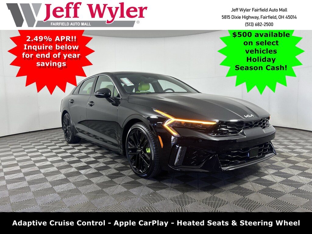Delivers 33 Highway MPG and 23 City MPG! This Kia K5 boasts a Intercooled Turbo Regular Unleaded I-4 2.5 L/152 engine powering this Automatic transmission. Window Grid Antenna, Wheels: 19" x 8.0J Gloss Black Machined Finish Alloy, Variable Intermittent Wipers.