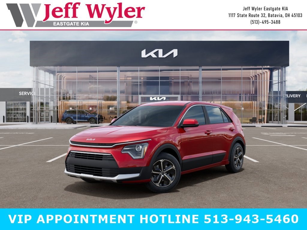 Priced below KBB Fair Purchase Price! Runway Red 2026 Kia Niro LX 1.6L 4-Cylinder DGI DOHC FWD 6-Speed Dual Clutch 53/54 City/Highway MPG Jeff Wyler Eastgate Auto Mall is delighted to offer this good-looking 2026 Kia Niro LX in Runway Red. Well equipped with: 4-Wheel Disc Brakes, 6 Speakers, ABS brakes, Air Conditioning, Alloy wheels, AM/FM radio, Auto High-beam Headlights, Automatic temperature control, Brake assist, Bumpers: body-color, Cargo Cover, Carpeted Floor Mats, Cloth-Trimmed Seats, Delay-off headlights, Driver door bin, Driver vanity mirror, Dual front impact airbags, Dual front side impact airbags, Electronic Stability Control, Exterior Parking Camera Rear, Four wheel independent suspension, Front anti-roll bar, Front Bucket Seats, Front Center Armrest, Front dual zone A/C, Front reading lights, Fully automatic headlights, Heated door mirrors, Illuminated entry, Knee airbag, Low tire pressure warning, Occupant sensing airbag, Outside temperature display, Overhead airbag, Overhead console, Panic alarm, Passenger door bin, Passenger vanity mirror, Power door mirrors, Power steering, Power windows, Radio: AM/FM/HD, Rear anti-roll bar, Rear window defroster, Rear window wiper, Remote keyless entry, Security system, Speed control, Speed-sensing steering, Split folding rear seat, Spoiler, Steering wheel mounted audio controls, Telescoping steering wheel, Tilt steering wheel, Traction control, Trip computer, Variably intermittent wipers, and Wheels: 6.5J x 16" Aero Alloy. 53/54 City/Highway MPG Price includes: $1500 - Kia Customer Cash. Exp. 05/04/2026