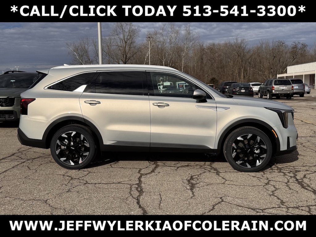 Jeff Wyler Kia of Colerain is excited to offer this attractive-looking 2026 Kia Sorento EX in Ivory Silver. EX Premium Package (2nd Row Captain's Chairs, Full-Length One-Touch Panoroof with Sliding Sunshade, LED Interior Lighting, and Radio: AM/FM Bose Premium Audio System), 3rd row seats: split-bench, 4-Wheel Disc Brakes, 6 Speakers, ABS brakes, Air Conditioning, Alloy wheels, AM/FM radio: SiriusXM, Apple CarPlay & Android Auto, Auto High-beam Headlights, Auto-dimming Rear-View mirror, Automatic temperature control, Brake assist, Bumpers: body-color, Carpeted Floor Mats, Delay-off headlights, Driver door bin, Driver vanity mirror, Dual front impact airbags, Dual front side impact airbags, Electronic Stability Control, Emergency communication system: 911 Connect, Exterior Parking Camera Rear, Four wheel independent suspension, Front anti-roll bar, Front Bucket Seats, Front Center Armrest, Front dual zone A/C, Front fog lights, Front reading lights, Fully automatic headlights, Heated door mirrors, Heated Front Bucket Seats, Heated front seats, Illuminated entry, Knee airbag, Leather Shift Knob, Leather steering wheel, Low tire pressure warning, Navigation System, Occupant sensing airbag, Outside temperature display, Overhead airbag, Overhead console, Panic alarm, Passenger door bin, Passenger vanity mirror, Power door mirrors, Power driver seat, Power Liftgate, Power passenger seat, Power steering, Power windows, Radio data system, Radio: AM/FM Standard Sound System, Rear anti-roll bar, Rear reading lights, Rear seat center armrest, Rear side impact airbag, Rear window defroster, Rear window wiper, Remote keyless entry, Security system, Speed control, Speed-sensing steering, Split folding rear seat, Spoiler, Steering wheel mounted audio controls, SynTex Artificial Leather Seat Trim, Tachometer, Telescoping steering wheel, Tilt steering wheel, Traction control, Trip computer, Turn signal indicator mirrors, Variably intermittent wipers, and Wheels: 20" Machine-Finished Gloss Black Alloy Our PRE-OWNED vehicles are put through a rigorous 167- POINT QUALITY ASSURANCE INSPECTION along with an average amount of over $1,400.00 SPENT to recondition each vehicle so we can be sure to deliver you the highest quality vehicle like you deserve! ***ONLINE PRICE DOES NOT INCLUDE WYLER FAMILY FIRST PACKAGE***