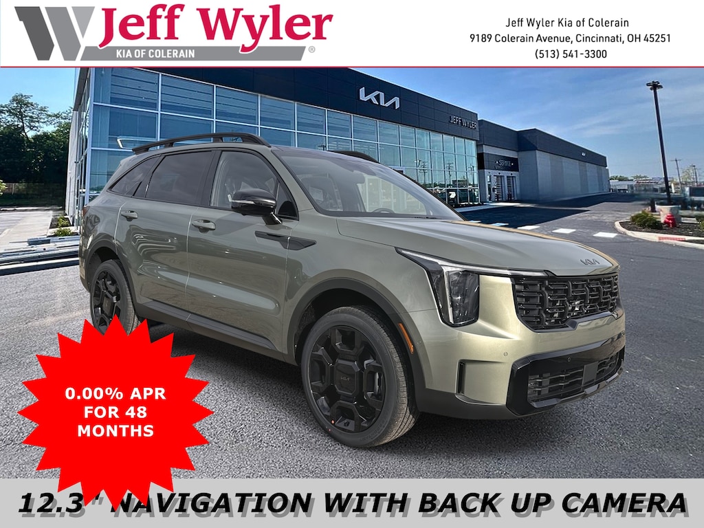 Jeff Wyler Kia of Colerain is pleased to offer this terrific-looking 2026 Kia Sorento X-Line SX Prestige in Jungle Green. 12 Speakers, 3rd row seats: split-bench, 4-Wheel Disc Brakes, ABS brakes, Air Conditioning, Alloy wheels, AM/FM radio: SiriusXM, Apple CarPlay & Android Auto, Auto High-beam Headlights, Auto-dimming Rear-View mirror, Automatic temperature control, Brake assist, Bumpers: body-color, Carpeted Floor Mats, Delay-off headlights, Driver door bin, Driver vanity mirror, Dual front impact airbags, Dual front side impact airbags, Electronic Stability Control, Emergency communication system: 911 Connect, Exterior Parking Camera Rear, Four wheel independent suspension, Front anti-roll bar, Front Bucket Seats, Front Center Armrest, Front dual zone A/C, Front fog lights, Front reading lights, Fully automatic headlights, Garage door transmitter: HomeLink, Heated & Ventilated Front Bucket Seats, Heated door mirrors, Heated front seats, Heated rear seats, Heated steering wheel, Illuminated entry, Knee airbag, Leather Shift Knob, Leather steering wheel, Low tire pressure warning, Memory seat, Navigation System, Occupant sensing airbag, Outside temperature display, Overhead airbag, Overhead console, Panic alarm, Passenger door bin, Passenger vanity mirror, Perforated Genuine Leather Seat Trim, Power door mirrors, Power driver seat, Power Liftgate, Power moonroof, Power passenger seat, Power steering, Power windows, Radio data system, Radio: AM/FM Bose Premium Audio System, Rain sensing wipers, Rear anti-roll bar, Rear reading lights, Rear side impact airbag, Rear window defroster, Rear window wiper, Remote keyless entry, Security system, Speed control, Speed-sensing steering, Split folding rear seat, Spoiler, Steering wheel mounted audio controls, Tachometer, Telescoping steering wheel, Tilt steering wheel, Traction control, Trip computer, Turn signal indicator mirrors, Variably intermittent wipers, Ventilated front seats, and Wheels: 20" Gloss Black X-Line Alloy Our PRE-OWNED vehicles are put through a rigorous 167- POINT QUALITY ASSURANCE INSPECTION along with an average amount of over $1,400.00 SPENT to recondition each vehicle so we can be sure to deliver you the highest quality vehicle like you deserve! ***ONLINE PRICE DOES NOT INCLUDE WYLER FAMILY FIRST PACKAGE***
