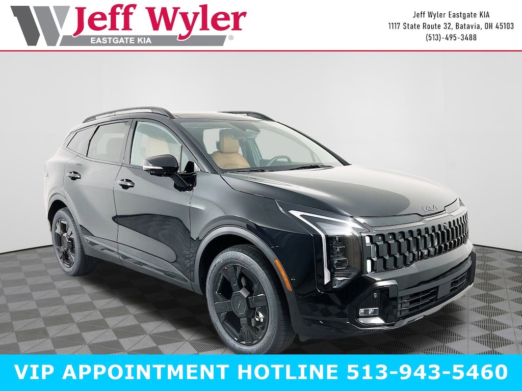 Ebony Black 2026 Kia Sportage X-Line I4 AWD 8-Speed Automatic 23/30 City/Highway MPG Jeff Wyler Eastgate Auto Mall is proud to offer this great 2026 Kia Sportage X-Line in Ebony Black. Well equipped with: X-Line Premium Package (LED Interior Lighting, Panoramic Sunroof, and Smart Power Liftgate), X-Line Technology Package (12.3" TFT Cluster, Curve Type, LED Front Fog Lights, Memory Driver Seat & Outside Mirrors, Parking Collision Avoidance-Assist - Reverse, Parking Distance Warning, Power-Folding Outside Mirrors, Radio: AM/FM/HD Premium Audio System, and Surround View Monitor w/Blind Spot View Monitor), 4-Wheel Disc Brakes, 6 Speakers, ABS brakes, Air Conditioning, All Weather Mats, Alloy wheels, Auto High-beam Headlights, Automatic temperature control, Brake assist, Bumpers: body-color, Delay-off headlights, Driver door bin, Driver vanity mirror, Dual front impact airbags, Dual front side impact airbags, Electronic Stability Control, Emergency communication system: Kia Connect (includes 1 year free trial), Four wheel independent suspension, Front anti-roll bar, Front Bucket Seats, Front Center Armrest, Front dual zone A/C, Fully automatic headlights, Heated door mirrors, Heated Front Bucket Seats, Heated front seats, Illuminated entry, Leather steering wheel, Low tire pressure warning, Occupant sensing airbag, Outside temperature display, Overhead airbag, Overhead console, Panic alarm, Passenger door bin, Passenger vanity mirror, Power door mirrors, Power driver seat, Power steering, Power windows, Radio: AM/FM/HD Audio System, Rain sensing wipers, Rear anti-roll bar, Rear seat center armrest, Rear side impact airbag, Rear window defroster, Rear window wiper, Remote keyless entry, Security system, Speed control, Speed-sensing steering, Split folding rear seat, Spoiler, Steering wheel mounted audio controls, SynTex Premium Leatherette Seat Trim, Tachometer, Telescoping steering wheel, Tilt steering wheel, Traction control, Trip computer, Turn signal indicator mirrors, Variably intermittent wipers, and Wheels: 19" x 7.5J Gloss Black Alloy. 23/30 City/Highway MPG