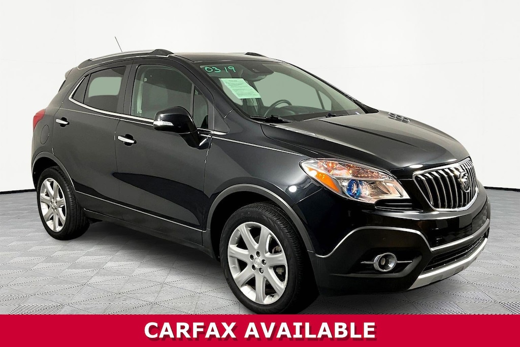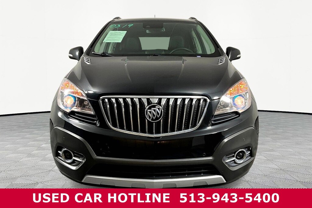 Jeff Wyler Eastgate Auto Mall is excited to offer this beautiful 2015 Buick Encore Premium in Carbon Black Metallic. Well equipped with: Experience Buick Package (DISC) (Power Tilt-Sliding Moonroof, Radio: AM/FM Audio System w/Nav/Single CD Player, SiriusXM Satellite Radio, and Wheels: 18" Chromed Aluminum (DISC)), Preferred Equipment Group 1SN (Bose Premium 7-Speaker Audio System Feature, Carpeted Rear Cargo Mat, Forward Collision Alert, Lane Departure Warning System, Rainsense Intermittent Front Wipers, Rear Cargo Net, and Ultrasonic Front & Rear Park Assist), 3.53 Final Drive Axle Ratio, 4-Wheel Disc Brakes, 6-Way Power Driver Seat Adjuster, 6-Way Power Front Passenger Seat Adjuster, 7 Speakers, ABS brakes, Air Conditioning, Alloy wheels, AM/FM radio: SiriusXM, Auto-dimming Rear-View mirror, Automatic temperature control, Brake assist, Bumpers: body-color, CD player, Compass, Delay-off headlights, Driver door bin, Driver vanity mirror, Driver's Seat Mounted Armrest, Dual front impact airbags, Dual front side impact airbags, Electronic Stability Control, Emergency communication system: OnStar Directions & Connections, Exterior Parking Camera Rear, Front anti-roll bar, Front Bucket Seats, Front dual zone A/C, Front fog lights, Front reading lights, Front wheel independent suspension, Fully automatic headlights, Heated door mirrors, Heated Driver & Front Passenger Seats, Heated front seats, Heated steering wheel, Illuminated entry, Knee airbag, Leather steering wheel, Leather-Appointed Seat Trim, Low tire pressure warning, Memory seat, Occupant sensing airbag, Outside temperature display, Overhead airbag, Panic alarm, Passenger door bin, Passenger vanity mirror, Power door mirrors, Power driver seat, Power passenger seat, Power steering, Power windows, Premium audio system: IntelliLink, Radio data system, Radio: AM/FM Audio System w/MP3 CD Player, Rain sensing wipers, Rear seat center armrest, Rear side impact airbag, Rear window defroster, Rear window wiper, Remote keyless entry, Ride & Handling Suspension, Roof rack: rails only, Security system, Speed control, Speed-sensing steering, Split folding rear seat, Spoiler, Steering wheel mounted audio controls, Tachometer, Telescoping steering wheel, Tilt steering wheel, Traction control, Trip computer, Turn signal indicator mirrors, Variably intermittent wipers, Wheel Lock Kit (LPO), Wheels: 18" 5-Spoke Painted Cast Aluminum, and Wheels: 18" 7-Spoke Painted Cast Aluminum. CARFAX One-Owner. Clean CARFAX. Reviews: * Small doesnât have to mean skimpy. The 2015 Buick Encore SUV may be compact, but its bold appearance, long list of luxury and electronic trappings and modern drivetrain make it an exceptionally good value. Source: KBB.com * Quiet interior; good fuel economy; long list of tech and safety features. Source: EdmundsAwards: * JD Power Automotive Performance, Execution and Layout (APEAL) Study * 2015 IIHS Top Safety Pick * 2015 KBB.com 5-Year Cost to Own Awards * 2015 KBB.com Brand Image Awards Ask about available certifications. Used vehicles 10 years of age or newer with less than 100,000 miles are eligible for the Wyler Assurance Program, but eligible vehicles must pass our reconditioning process and multi-point inspection. Provided the vehicle passes inspection, vehicles will be eligible for the 6 month/6,000 mile limited warranty. The 6 month/6,000 mile limited warranty is NOT available on AS-IS vehicles, wholesale vehicles, lease buyback/pass-thru vehicles or un-inspected vehicles. Note that this program can also apply to vehicles where the remaining factory coverage is less than 6 months or 6,000 miles. Please check the Federal Trade Commission (FTC) Buyers guide on the vehicle for full details as to whether or not warranty coverage may apply. Contact Dealer for additional details. The Wyler Assurance 6 month/6,000 Mile limited warranty ends 6 months from the date of the Retail Purchase Agreement (BUYERS ORDER) or when the vehicle's odometer registers 6,
