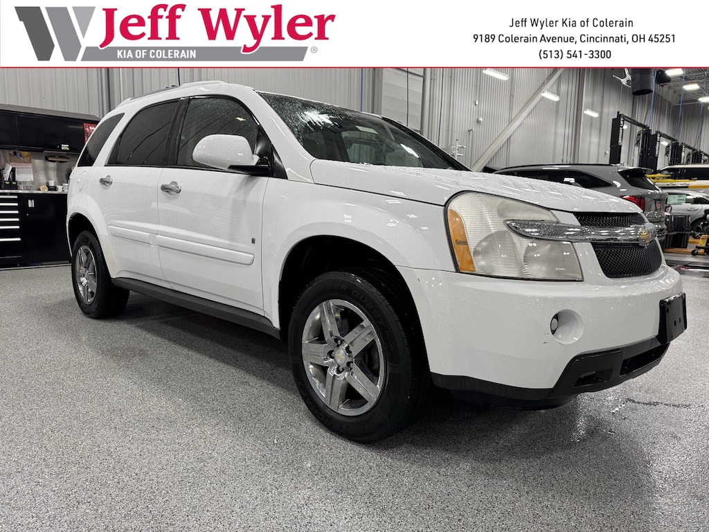 Jeff Wyler Kia of Colerain is honored to offer this stunning-looking 2008 Chevrolet Equinox LTZ in Summit White. Equipment Group LTZ (6-Way Power Driver Seat Adjuster, Front Halogen Fog Lamps, Inside Self-Dimming Rear-View Mirror, Remote Vehicle Start, and XM Satellite Radio), Trailering Equipment, 17" x 7" Bright Chrome Aluminum Wheels, 2.48 Axle Ratio, 4-Wheel Disc Brakes, 7 Speakers, ABS brakes, Air Conditioning, Alloy wheels, AM/FM radio: XM, AM/FM Stereo w/MP3/6-Disc CD/XM Satellite, Auto-dimming Rear-View mirror, Bodyside moldings, Bumpers: body-color, CD player, Compass, Delay-off headlights, Driver & Front Passenger Heated Seats, Driver door bin, Driver vanity mirror, Dual front impact airbags, Electronic Stability Control, Emergency communication system: OnStar Safe & Sound, Four wheel independent suspension, Front anti-roll bar, Front Bucket Seats, Front Center Armrest w/Storage, Front fog lights, Front License Plate Bracket, Front reading lights, Front Reclining Bucket Seats, Fully automatic headlights, Heated front seats, Illuminated entry, Leather Seating Inserts, Leather steering wheel, Low tire pressure warning, Occupant sensing airbag, Outside temperature display, Overhead airbag, Panic alarm, Passenger door bin, Passenger vanity mirror, Power door mirrors, Power driver seat, Power steering, Power Tilt-Sliding Sunroof w/Express-Open, Power windows, Radio data system, Rear anti-roll bar, Rear seat center armrest, Rear window defroster, Rear window wiper, Remote keyless entry, Roof rack: rails only, Security system, Speed control, Speed-sensing steering, Split folding rear seat, Spoiler, Steering wheel mounted audio controls, Tachometer, Tilt steering wheel, Traction control, Trip computer, Variably intermittent wipers, Voltmeter, and Weather band radio Our PRE-OWNED vehicles are put through a rigorous 167- POINT QUALITY ASSURANCE INSPECTION along with an average amount of over $1,400.00 SPENT to recondition each vehicle so we can be sure to deliver you the highest quality vehicle like you deserve! ***ONLINE PRICE DOES NOT INCLUDE WYLER FAMILY FIRST PACKAGE***