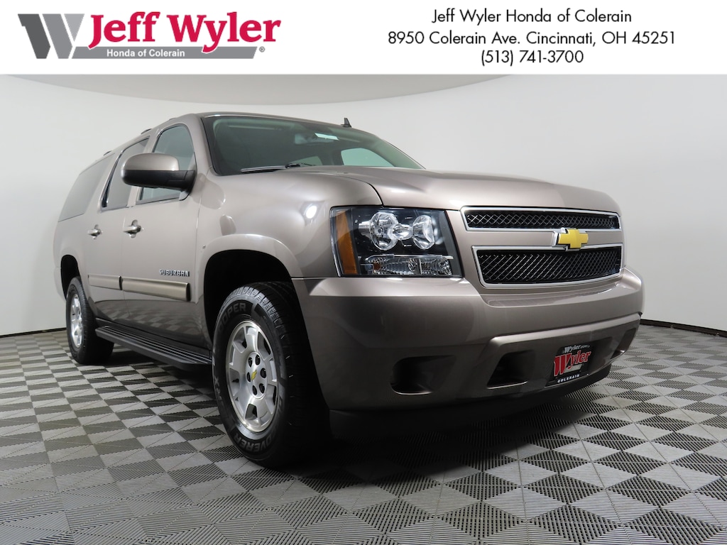 Jeff Wyler Honda of Colerain is delighted to offer this gorgeous 2013 Chevrolet Suburban 1500 LS in Mocha Steel Metallic. Well equipped with: Convenience Package (Inside Rear-View Mirror w/Rear Camera Display, Power-Adjustable Accelerator & Brake Pedals, Rear Park Assist, Rear Vision Camera, and Remote Vehicle Starter System), Heavy-Duty Trailering Package (2-Speed Active Electronic AutoTrac Transfer Case, Heavy-Duty Air-to-Oil Auxiliary Transmission Oil Cooler, and Heavy-Duty Air-to-Oil External Engine Oil Cooler), License Plate Front Mounting Package, Preferred Equipment Group 1LS (Black Roof-Mounted Luggage Rack Center Rails and Power-Adjustable/Manual-Folding Outside Mirrors), Premium Smooth Ride Suspension Package, 17" x 7.5" 5-Spoke Aluminum Wheels, 3rd row seats: split-bench, 4-Wheel Disc Brakes, 6 Speakers, 6-Way Power Driver Seat Adjuster, 6-Way Power Front Passenger Seat Adjuster, ABS brakes, Air Conditioning, Alloy wheels, AM/FM radio: SiriusXM, AM/FM Stereo w/CD Player & MP3 Playback, Bodyside moldings, Bumpers: body-color, CD player, Color-Keyed Bodyside Moldings, Compass, Delay-off headlights, Driver door bin, Driver Manual Lumbar Control, Driver vanity mirror, Dual front impact airbags, Dual front side impact airbags, Electronic Stability Control, Emergency communication system: OnStar Directions & Connections, Front 40/20/40 Split-Bench Seat, Front anti-roll bar, Front Bucket Seats, Front Center Armrest, Front dual zone A/C, Front reading lights, Front wheel independent suspension, Fully automatic headlights, Heated door mirrors, Heavy-Duty Locking Rear Differential, Illuminated entry, Leather steering wheel, Low tire pressure warning, Occupant sensing airbag, Outside temperature display, Overhead airbag, Overhead console, Panic alarm, Passenger door bin, Passenger vanity mirror, Power door mirrors, Power driver seat, Power passenger seat, Power steering, Power windows, Premium Cloth Seat Trim, Radio data system, Rear air conditioning, Rear anti-roll bar, Rear audio controls, Rear reading lights, Rear seat center armrest, Rear window defroster, Rear window wiper, Remote keyless entry, Roof rack, Security system, SIRIUSXM Satellite Radio, Speed control, Split folding rear seat, Spoiler, Steering wheel mounted audio controls, Tachometer, Tilt steering wheel, Traction control, Trip computer, USB Port, Variably intermittent wipers, and Voltmeter.