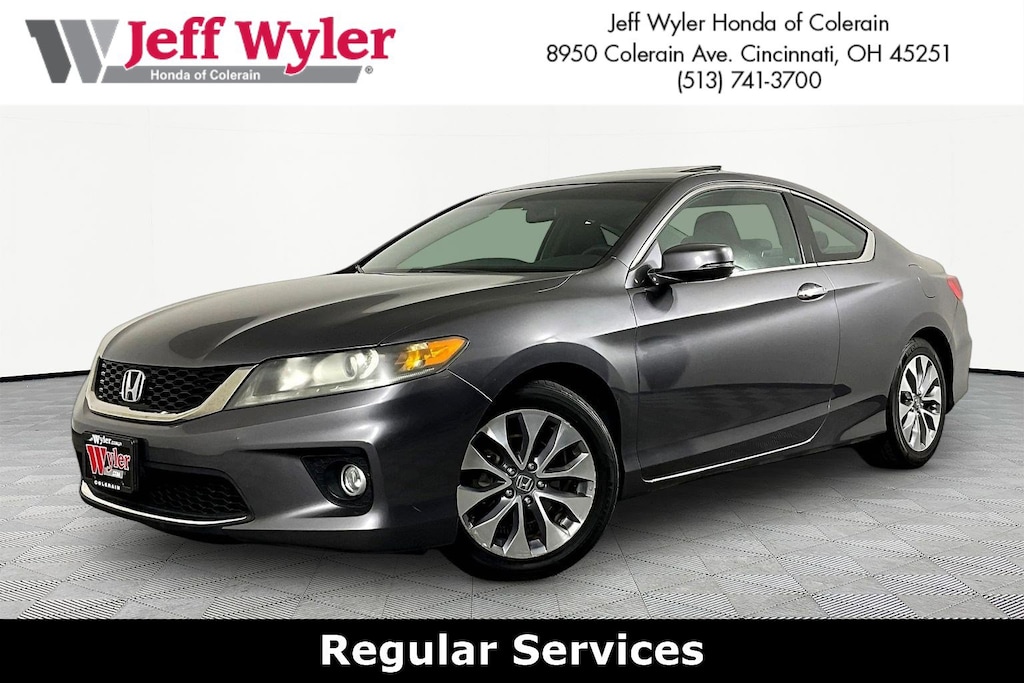 Jeff Wyler Honda of Colerain is delighted to offer this terrific 2013 Honda Accord EX in Modern Steel Metallic. Well equipped with: 160-Watt AM/FM/CD Audio System, 17" Alloy Wheels, 4-Wheel Disc Brakes, 6 Speakers, ABS brakes, Air Conditioning, Alloy wheels, AM/FM radio, Automatic temperature control, Brake assist, Bumpers: body-color, CD player, Cloth Seat Trim, Delay-off headlights, Driver door bin, Driver vanity mirror, Dual front impact airbags, Dual front side impact airbags, Electronic Stability Control, Exterior Parking Camera Rear, Four wheel independent suspension, Front anti-roll bar, Front Bucket Seats, Front Center Armrest, Front dual zone A/C, Front fog lights, Front reading lights, Fully automatic headlights, Heated door mirrors, Illuminated entry, Low tire pressure warning, Occupant sensing airbag, Outside temperature display, Overhead airbag, Overhead console, Panic alarm, Passenger door bin, Passenger vanity mirror, Power door mirrors, Power moonroof, Power steering, Power windows, Radio data system, Rear anti-roll bar, Rear seat center armrest, Rear window defroster, Remote keyless entry, Security system, Speed control, Speed-sensing steering, Speed-Sensitive Wipers, Spoiler, Steering wheel mounted audio controls, Tachometer, Telescoping steering wheel, Tilt steering wheel, Traction control, Trip computer, Turn signal indicator mirrors, and Variably intermittent wipers.