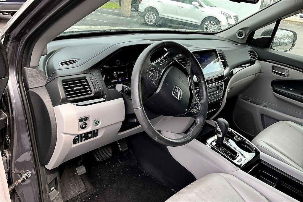 Leather, 4-Wheel Disc Brakes, 4.25 Axle Ratio, 8 Speakers, ABS brakes, Air Conditioning, Alloy wheels, AM/FM radio: SiriusXM, Apple CarPlay/Android Auto, Auto High-beam Headlights, Auto-dimming Rear-View mirror, Automatic temperature control, Blind Spot Information (BSI) System warning, Bluetooth® Hands-Free Link, Brake assist, Bumpers: body-color, Compass, Delay-off headlights, Driver door bin, Driver vanity mirror, Driver's Seat Mounted Armrest, Dual front impact airbags, Dual front side impact airbags, Electronic Stability Control, Exterior Parking Camera Rear, Forward collision: Collision Mitigation Braking System (CMBS) + FCW mitigation, Four wheel independent suspension, Front anti-roll bar, Front Bucket Seats, Front dual zone A/C, Front fog lights, Front reading lights, Fully automatic headlights, Garage door transmitter: HomeLink, Heated door mirrors, Heated Front Bucket Seats, Heated front seats, Heated steering wheel, Honda Satellite-Linked Navigation System, Illuminated entry, Lane departure: Lane Keeping Assist System (LKAS) active, Leather Seat Trim, Low tire pressure warning, Memory seat, Navigation system: Honda Satellite-Linked Navigation System, Occupant sensing airbag, Outside temperature display, Overhead airbag, Overhead console, Panic alarm, Passenger door bin, Passenger seat mounted armrest, Passenger vanity mirror, Power door mirrors, Power driver seat, Power moonroof, Power passenger seat, Power steering, Power windows, Radio data system, Radio: AM/FM/MP3 w/Nav System & Truck-Bed Audio, Rear air conditioning, Rear anti-roll bar, Rear reading lights, Rear seat center armrest, Rear step bumper, Rear window defroster, Remote keyless entry, Security system, SiriusXM Radio, Speed control, Speed-sensing steering, Split folding rear seat, Steering wheel mounted audio controls, Tachometer, Telescoping steering wheel, Tilt steering wheel, Traction control, Trip computer, Variably intermittent wipers, and Wheels: 18" Exclusive Machine-Finished Alloy.