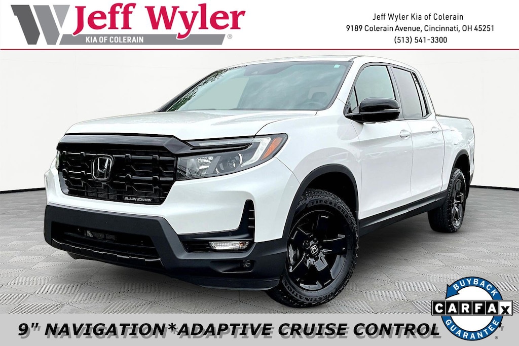 Jeff Wyler Kia of Colerain is very proud to offer this good-looking 2024 Honda Ridgeline Black Edition in Platinum White Pearl. 4-Wheel Disc Brakes, 4.33 Axle Ratio, 8 Speakers, ABS brakes, Air Conditioning, Alloy wheels, AM/FM radio: SiriusXM, Auto High-beam Headlights, Auto-dimming Rear-View mirror, Automatic temperature control, Blind Spot Information (BSI) System warning, Bluetooth® Hands-Free Link, Brake assist, Bumpers: body-color, Compass, Delay-off headlights, Driver door bin, Driver vanity mirror, Driver's Seat Mounted Armrest, Dual front impact airbags, Dual front side impact airbags, Electronic Stability Control, Emergency communication system: HondaLink Assist, Exterior Parking Camera Rear, Four wheel independent suspension, Front anti-roll bar, Front Bucket Seats, Front dual zone A/C, Front fog lights, Front reading lights, Fully automatic headlights, Garage door transmitter: HomeLink, Heated & Ventilated Front Bucket Seats, Heated door mirrors, Heated front seats, Heated rear seats, Heated steering wheel, Honda Satellite-Linked Navigation System, Illuminated entry, Leather Seat Trim, Leather steering wheel, Low tire pressure warning, Memory seat, Navigation system: Honda Satellite-Linked Navigation System, Occupant sensing airbag, Outside temperature display, Overhead airbag, Overhead console, Panic alarm, Passenger door bin, Passenger seat mounted armrest, Passenger vanity mirror, Power door mirrors, Power driver seat, Power moonroof, Power passenger seat, Power steering, Power windows, Radio data system, Radio: 540-Watt Premium Audio System w/8 Speakers, Rear air conditioning, Rear anti-roll bar, Rear reading lights, Rear seat center armrest, Rear step bumper, Rear window defroster, Remote keyless entry, Security system, SiriusXM, Speed control, Speed-sensing steering, Split folding rear seat, Steering wheel mounted audio controls, Tachometer, Telescoping steering wheel, Tilt steering wheel, Traction control, Trip computer, Turn signal indicator mirrors, Variably intermittent wipers, Ventilated front seats, Wheels: 18" Berlina Black Alloy, and Wireless Apple CarPlay/Wireless Android Auto Our PRE-OWNED vehicles are put through a rigorous 167- POINT QUALITY ASSURANCE INSPECTION along with an average amount of over $1,400.00 SPENT to recondition each vehicle so we can be sure to deliver you the highest quality vehicle like you deserve! ***ONLINE PRICE DOES NOT INCLUDE WYLER FAMILY FIRST PACKAGE***
