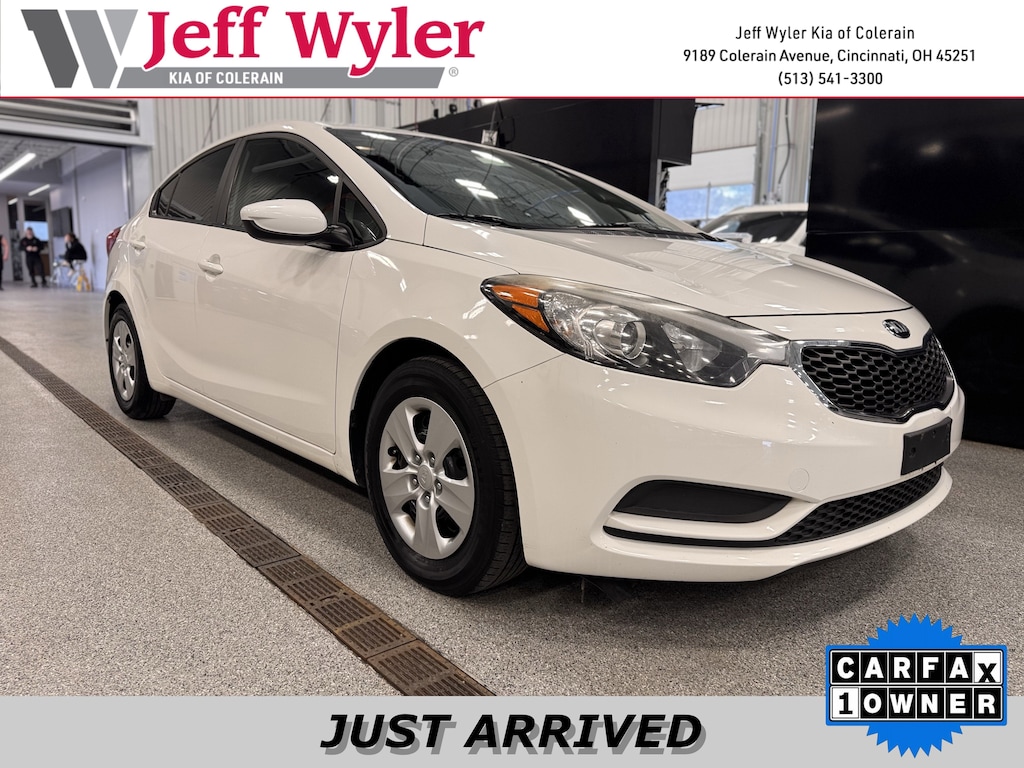 Jeff Wyler Kia of Colerain is pumped up to offer this terrific-looking 2016 Kia Forte LX in Clear White. 4 Speakers, 4-Wheel Disc Brakes, ABS brakes, Air Conditioning, AM/FM radio: SiriusXM, AM/FM/CD/MP3 Audio System, Brake assist, Bumpers: body-color, Cargo Net, Carpeted Floor Mats, CD player, Cloth Seat Trim, Delay-off headlights, Driver door bin, Driver vanity mirror, Dual front impact airbags, Dual front side impact airbags, Electronic Stability Control, Front anti-roll bar, Front Bucket Seats, Front Center Armrest, Front wheel independent suspension, Heated door mirrors, Illuminated entry, Low tire pressure warning, Occupant sensing airbag, Outside temperature display, Overhead airbag, Panic alarm, Passenger door bin, Passenger vanity mirror, Power door mirrors, Power steering, Power windows, Rear window defroster, Remote keyless entry, Split folding rear seat, Steering wheel mounted audio controls, Tachometer, Telescoping steering wheel, Tilt steering wheel, Traction control, Trip computer, Variably intermittent wipers, and Wheels: 15" x 6.0" Steel w/Wheel Covers Our PRE-OWNED vehicles are put through a rigorous 167- POINT QUALITY ASSURANCE INSPECTION along with an average amount of over $1,400.00 SPENT to recondition each vehicle so we can be sure to deliver you the highest quality vehicle like you deserve! ***ONLINE PRICE DOES NOT INCLUDE WYLER FAMILY FIRST PACKAGE***