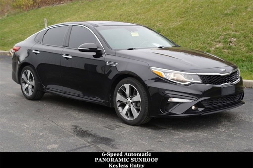 Jeff Wyler Florence Buick GMC is excited to offer this handsome 2019 Kia Optima S in Ebony Black. S Panoramic Sunroof Package (LED Overhead Front & Rear Reading Lights and Panoramic Sunroof), 6 Speakers, Alloy wheels, Apple CarPlay & Android Auto, Auto High-beam Headlights, Auto-dimming Rear-View mirror, Automatic temperature control, Bumpers: body-color, Delay-off headlights, Front Bucket Seats, Front dual zone A/C, Front fog lights, Fully automatic headlights, Heated door mirrors, Illuminated entry, Power driver seat, Radio data system, Radio: AM/FM/MP3/SiriusXM Audio System, Remote keyless entry, Steering wheel mounted audio controls, Telescoping steering wheel, Tilt steering wheel, Turn signal indicator mirrors, 4-Wheel Disc Brakes, ABS brakes, Air Conditioning, AM/FM radio: SiriusXM, Anti-whiplash front head restraints, Brake assist, Cargo Net, Carpet Floor Mats, Driver door bin, Driver vanity mirror, Dual front impact airbags, Dual front side impact airbags, Electronic Stability Control, Emergency communication system: UVO eServices, Four wheel independent suspension, Front anti-roll bar, Front Center Armrest, Front reading lights, Knee airbag, Leather steering wheel, Low tire pressure warning, Occupant sensing airbag, Outside temperature display, Overhead airbag, Overhead console, Panic alarm, Passenger door bin, Passenger vanity mirror, Power door mirrors, Power steering, Power windows, Rear anti-roll bar, Rear seat center armrest, Rear window defroster, Security system, Speed control, Speed-sensing steering, Split folding rear seat, Spoiler, Sport Cloth Seat Trim, Tachometer, Traction control, Trip computer, Variably intermittent wipers, and Wheels: 7.5J x 18 Machine Finish Alloy Our PRE-OWNED vehicles are put through a rigorous 167- POINT QUALITY ASSURANCE INSPECTION along with an average amount of over $1,400.00 SPENT to recondition each vehicle so we can be sure to deliver you the highest quality vehicle like you deserve! ***ONLINE PRICE DOES NOT INCLUDE WYLER FAMILY FIRST PACKAGE*** Stop by 1154 Burlington Pike Florence KY 41402to see for yourself, or give us a call @ 859-525-8001 to schedule your test drive!