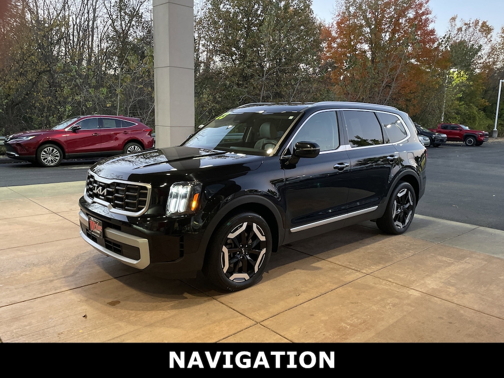 Jeff Wyler Springfield Auto Mall is pumped up to offer this gorgeous-looking 2023 Kia Telluride S in Ebony Black. Well equipped with: 3.648 Axle Ratio, 3rd row seats: split-bench, 4-Wheel Disc Brakes, 6 Speakers, ABS brakes, Air Conditioning, Alloy wheels, AM/FM radio: SiriusXM, Apple CarPlay & Android Auto, Auto High-beam Headlights, Automatic temperature control, Brake assist, Bumpers: body-color, Carpet Floor Mats, Delay-off headlights, Driver door bin, Driver vanity mirror, Dual front impact airbags, Dual front side impact airbags, Electronic Stability Control, Emergency communication system: 911 Connect, Exterior Parking Camera Rear, Four wheel independent suspension, Front anti-roll bar, Front Bucket Seats, Front Center Armrest, Front dual zone A/C, Front reading lights, Fully automatic headlights, Heated door mirrors, Heated Front Bucket Seats, Heated front seats, Illuminated entry, Knee airbag, Leather Shift Knob, Leather steering wheel, Low tire pressure warning, Navigation System, Occupant sensing airbag, Outside temperature display, Overhead airbag, Overhead console, Panic alarm, Passenger door bin, Passenger vanity mirror, Power door mirrors, Power driver seat, Power steering, Power windows, Radio data system, Radio: AM/FM Display Audio System, Rear air conditioning, Rear anti-roll bar, Rear audio controls, Rear reading lights, Rear side impact airbag, Rear window defroster, Rear window wiper, Reclining 3rd row seat, Remote keyless entry, Roof rack: rails only, Security system, Smart Key w/ Push Button and Remote Start, Speed control, Speed-sensing steering, Split folding rear seat, Spoiler, Steering wheel mounted audio controls, SynTex Synthetic Leather Seat Trim, Tachometer, Telescoping steering wheel, Tilt steering wheel, Traction control, Trip computer, Turn signal indicator mirrors, Variably intermittent wipers, and Wheels: 20" x 7.5" Black Finish. Ask about available certifications. Used vehicles 10 years of age or newer with less than 100,000 miles are eligible for the Wyler Assurance Program, but eligible vehicles must pass our reconditioning process and multi-point inspection. Provided the vehicle passes inspection, vehicles will be eligible for the 6 month/6,000 mile limited warranty. The 6 month/6,000 mile limited warranty is NOT available on AS-IS vehicles, wholesale vehicles, lease buyback/pass-thru vehicles or un-inspected vehicles. Note that this program can also apply to vehicles where the remaining factory coverage is less than 6 months or 6,000 miles. Please check the Federal Trade Commission (FTC) Buyers guide on the vehicle for full details as to whether or not warranty coverage may apply. Contact Dealer for additional details. The Wyler Assurance 6 month/6,000 Mile limited warranty ends 6 months from the date of the Retail Purchase Agreement (BUYERS ORDER) or when the vehicle's odometer registers 6,000 additional miles to the mileage listed on the BUYERS ORDER, whichever comes first. Your Deductible - The warranty holder on your contract pays the first $100 of each covered repair.