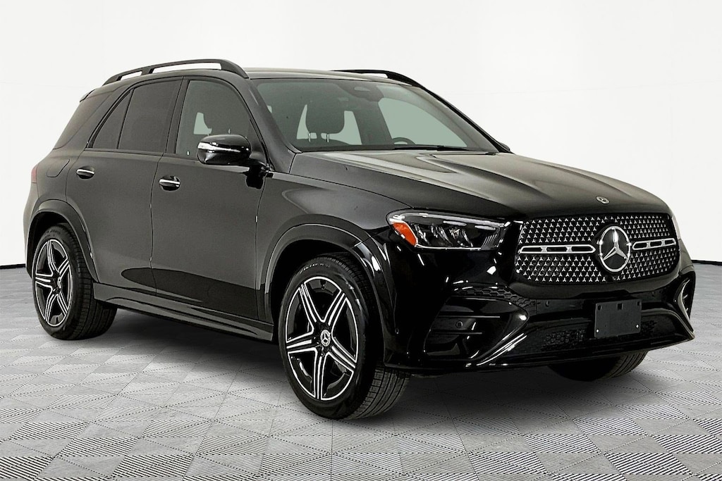 Obsidian Black Metallic 2025 Mercedes-Benz GLE 350 4MATIC® 9-Speed Automatic 2.0L I4 Turbocharged AMG® Line Body Styling, AMG® Line Exterior, Burmester® Surround Sound System w/Dolby Atmos, Chrome Roof Rails, Exclusive Trim, High-Gloss Black Elements, Night Package, Panorama Power Tilt/Sliding Sunroof, Perforated Brake Discs, Split-Folding Rear Seats, Wheels: 21" AMG® Multispoke.