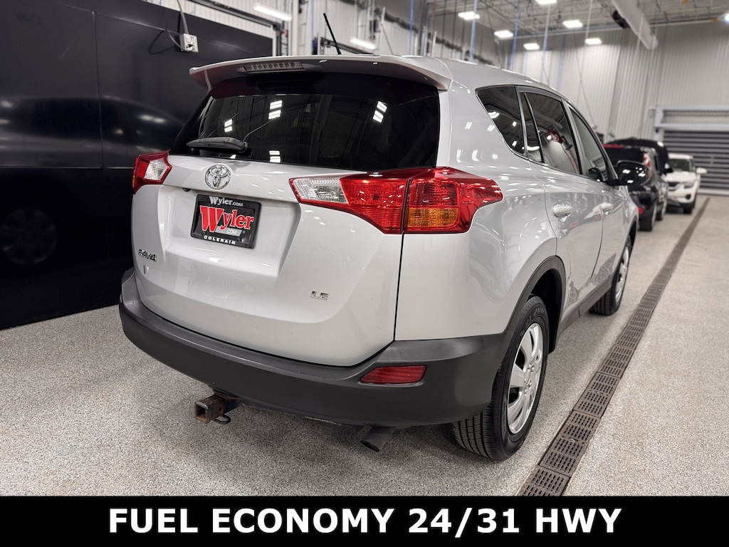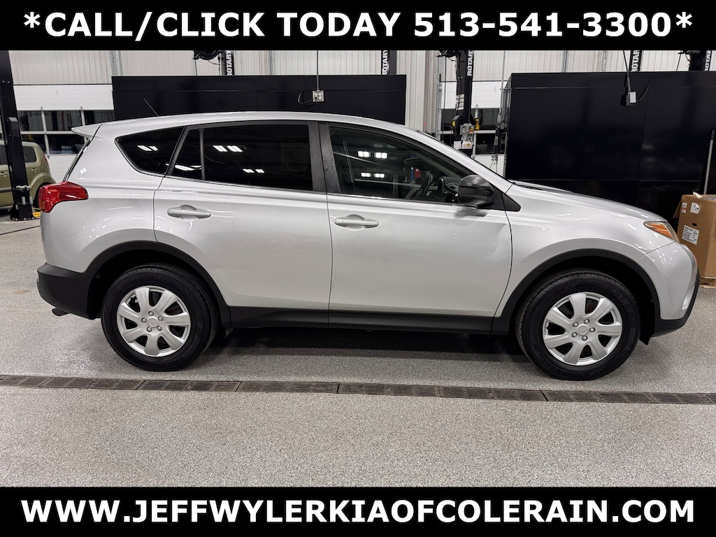 Jeff Wyler Kia of Colerain is pumped up to offer this beautiful 2015 Toyota RAV4 LE in Classic Silver Metallic. 3.815 Axle Ratio, 4-Wheel Disc Brakes, 6 Speakers, ABS brakes, Air Conditioning, AM/FM radio, Brake assist, Bumpers: body-color, CD player, Driver door bin, Driver vanity mirror, Dual front impact airbags, Dual front side impact airbags, Electronic Stability Control, Exterior Parking Camera Rear, Fabric Seat Trim, Four wheel independent suspension, Front anti-roll bar, Front Bucket Seats, Front Center Armrest, Front reading lights, Illuminated entry, Knee airbag, Low tire pressure warning, Occupant sensing airbag, Outside temperature display, Overhead airbag, Overhead console, Panic alarm, Passenger door bin, Passenger vanity mirror, Power door mirrors, Power steering, Power windows, Radio data system, Radio: Entune AM/FM/CD/MP3/WMA Playback w/6 Speakers, Rear anti-roll bar, Rear seat center armrest, Rear window defroster, Rear window wiper, Remote keyless entry, Speed control, Speed-sensing steering, Split folding rear seat, Spoiler, Steering wheel mounted audio controls, Tachometer, Telescoping steering wheel, Tilt steering wheel, Traction control, Trip computer, and Wheels: 17" x 6.5J Our PRE-OWNED vehicles are put through a rigorous 167- POINT QUALITY ASSURANCE INSPECTION along with an average amount of over $1,400.00 SPENT to recondition each vehicle so we can be sure to deliver you the highest quality vehicle like you deserve! ***ONLINE PRICE DOES NOT INCLUDE WYLER FAMILY FIRST PACKAGE***