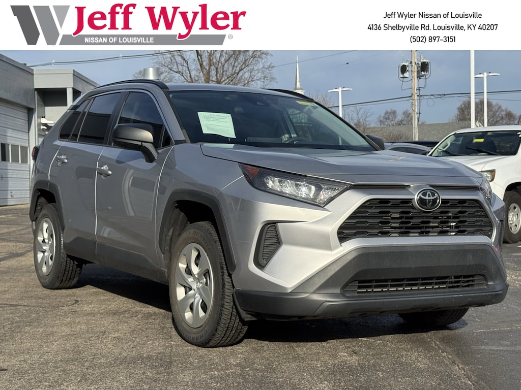 Jeff Wyler Nissan of Louisville is delighted to offer this great 2021 Toyota RAV4 LE in . ** HOME DELIVERY OPTIONS! ** Cloth, 17" Steel Wheels, 4-Wheel Disc Brakes, 6 Speakers, ABS brakes, Air Conditioning, AM/FM radio: SiriusXM, AM/FM Stereo, Apple CarPlay/Android Auto, Auto High-beam Headlights, Axle Ratio: 3.177, Brake assist, Bumpers: body-color, Driver door bin, Driver vanity mirror, Dual front impact airbags, Dual front side impact airbags, Electronic Stability Control, Emergency communication system, Exterior Parking Camera Rear, Fabric Seat Trim, Four wheel independent suspension, Front anti-roll bar, Front Bucket Seats, Front Center Armrest, Front reading lights, Illuminated entry, Knee airbag, Low tire pressure warning, Occupant sensing airbag, Outside temperature display, Overhead airbag, Overhead console, Panic alarm, Passenger door bin, Passenger vanity mirror, Power door mirrors, Power steering, Power windows, Radio data system, Rear anti-roll bar, Rear seat center armrest, Rear window defroster, Rear window wiper, Remote keyless entry, Roof rack: rails only, Speed control, Speed-sensing steering, Split folding rear seat, Spoiler, Steering wheel mounted audio controls, Tachometer, Telescoping steering wheel, Tilt steering wheel, Traction control, and Trip computer Our PRE-OWNED vehicles are put through a rigorous 167- POINT QUALITY ASSURANCE INSPECTION along with an average amount of over $1,400.00 SPENT to recondition each vehicle so we can be sure to deliver you the highest quality vehicle like you deserve! ***ONLINE PRICE DOES NOT INCLUDE WYLER FAMILY FIRST PACKAGE*** Stop by 4136 Shelbyville Road to see for yourself, or give us a call @ 502-897-3151 to schedule your test drive! Cloth.